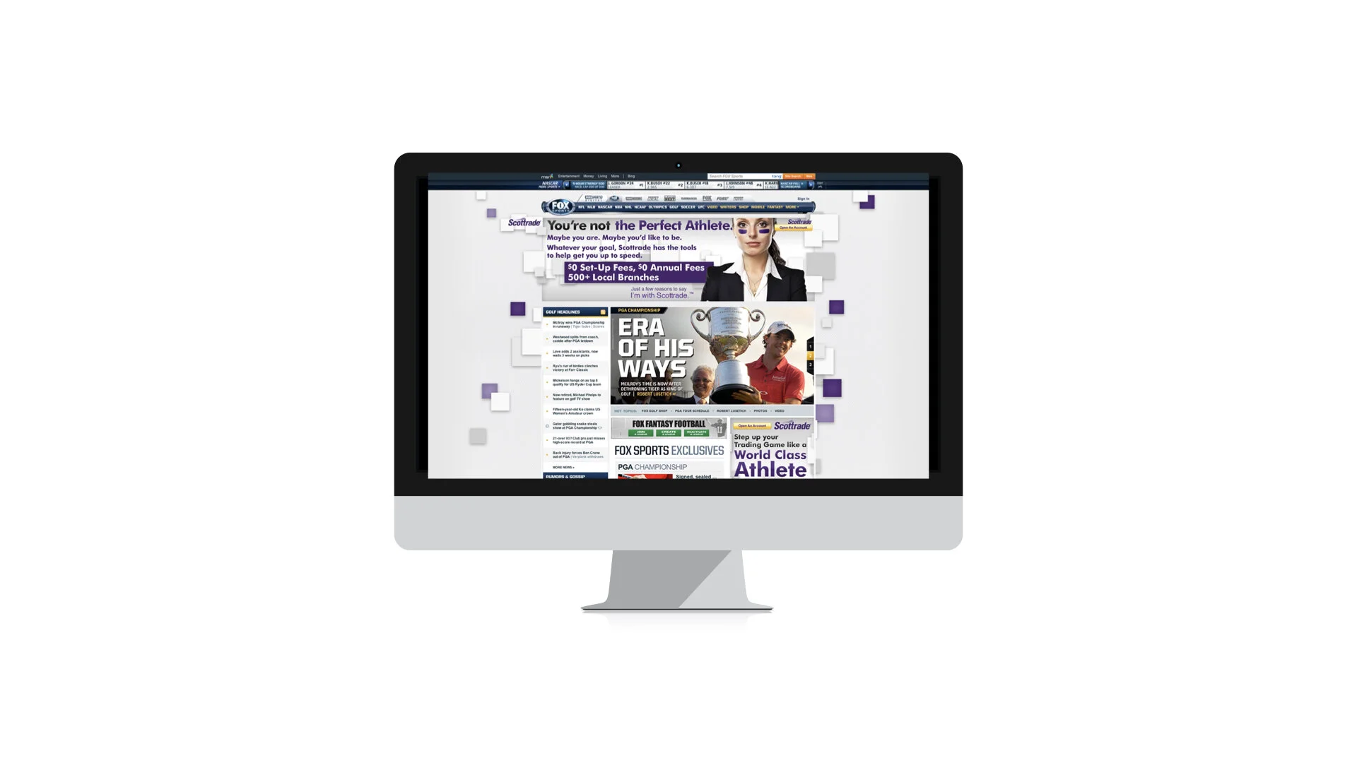 FOX Sports navigation bar with MSN partnership
